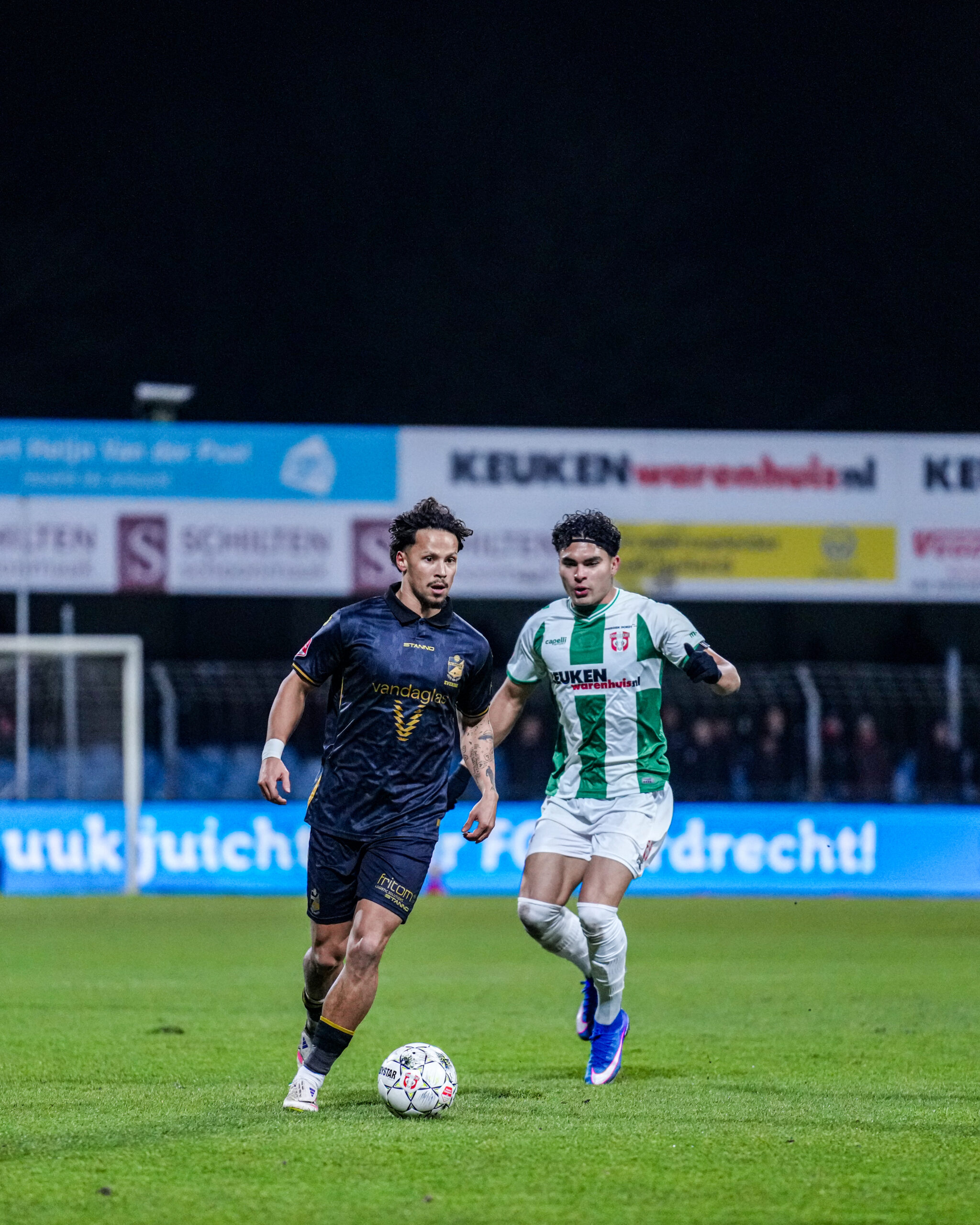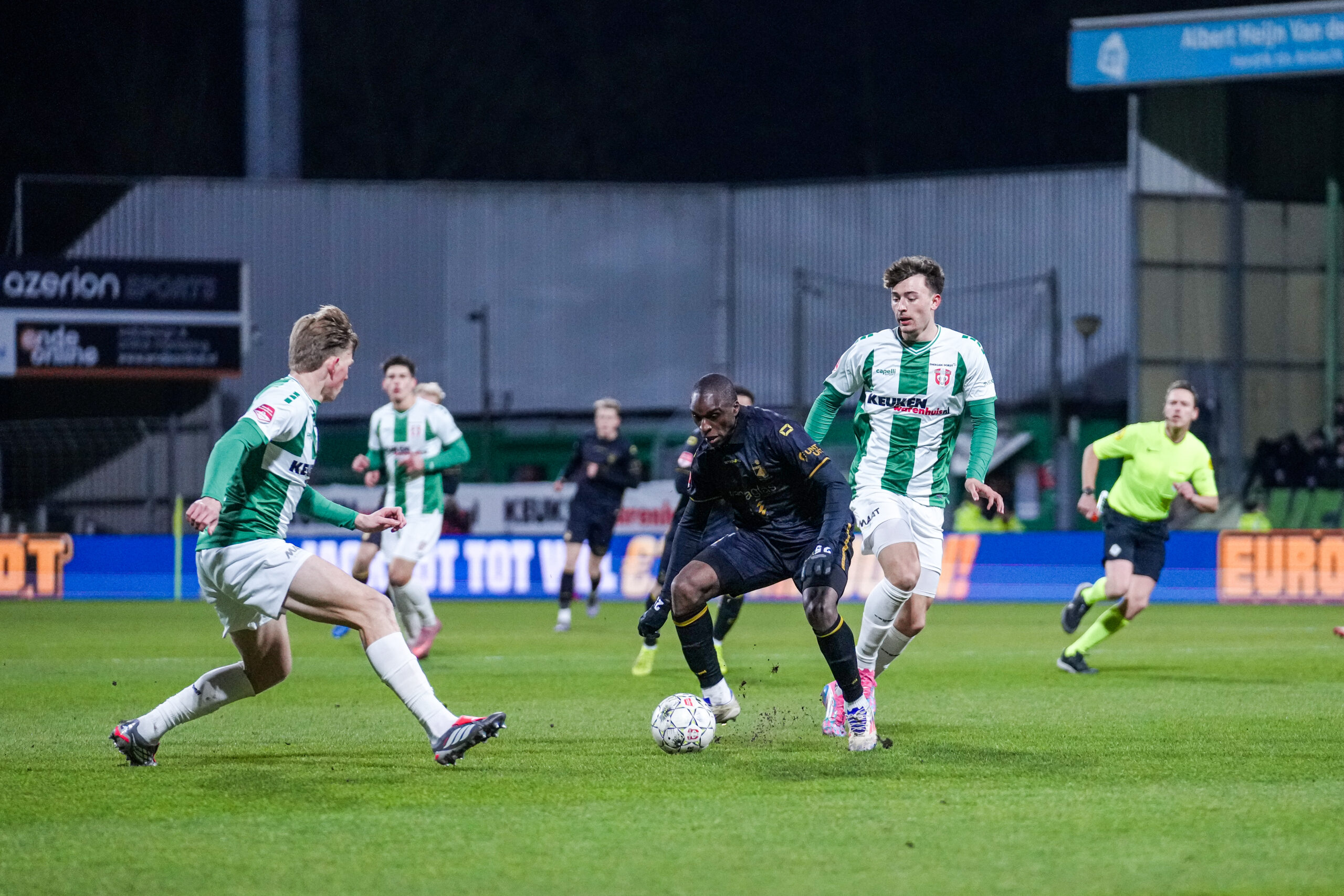 FC Dordrecht: Celton Biai; Sem Valk, Yannis M’Bemba, Jan Plug; Doyoung Yoon (74. Jurre van Aken), Martin Vetkal (87. Daniël van Vianen), Lawson Sunderland (61. Robin van Asten), Lorenzo Codutti; Argyrios Darelas; Joey de Bie (61. Nick Venema), Stephano Carrillo (87. Noah Bischof).