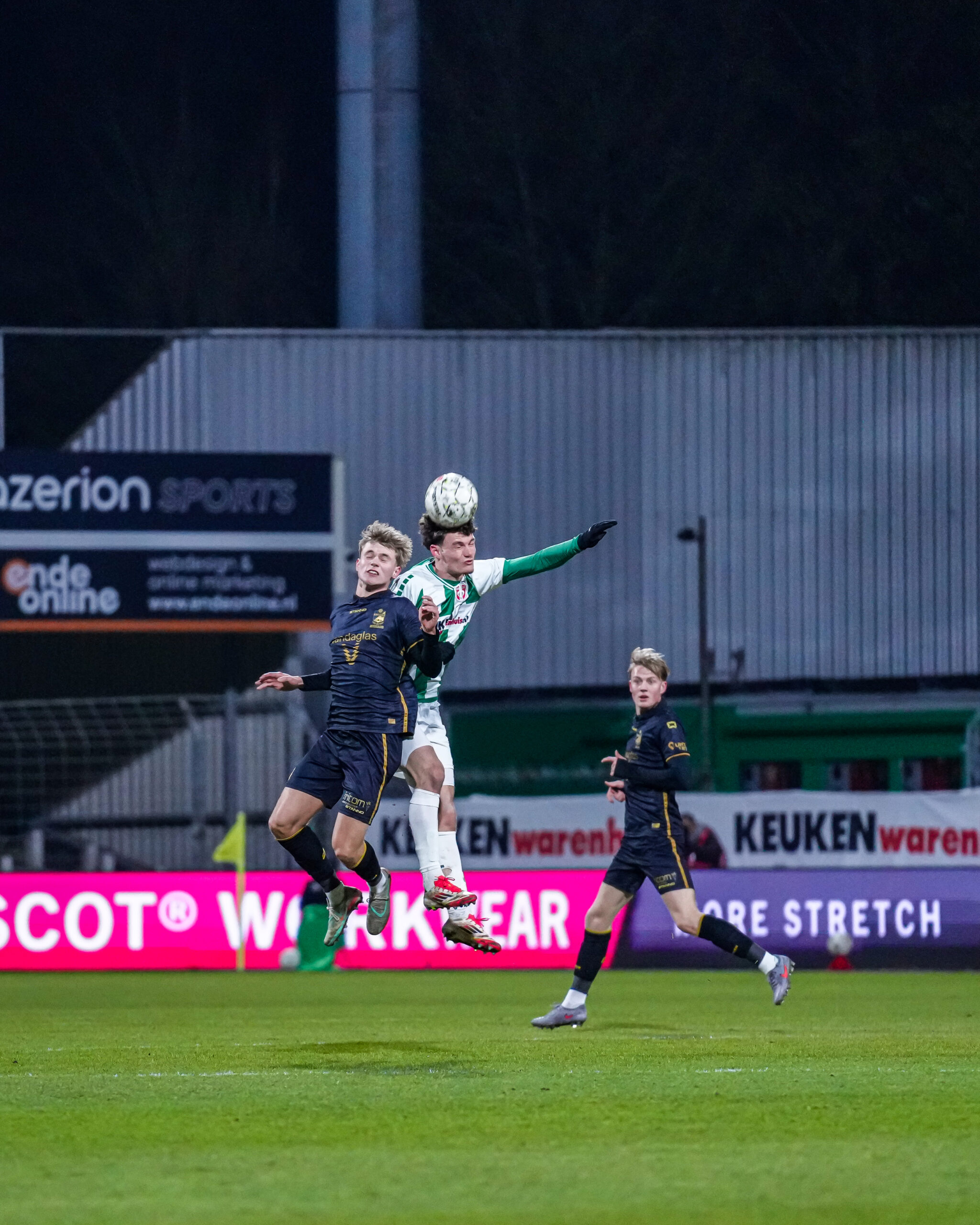 Na zes minuten liet FC Emmen voor het eerst van zich horen. Lukas Larsen kreeg de ruimte om vanaf de linkerkant uit te halen. De Deense vleugelverdediger aarzelde niet, maar zijn schot miste de nodige precisie en ging naast het doel van Celton Biai. Drie minuten later volgde opnieuw een dreigend moment. De bal viel uit een klutssituatie voor de voeten van aanvoerder Vicente Besuijen, die direct uithaalde. Zijn inzet was overtuigend, maar verdween net naast de rechterpaal.