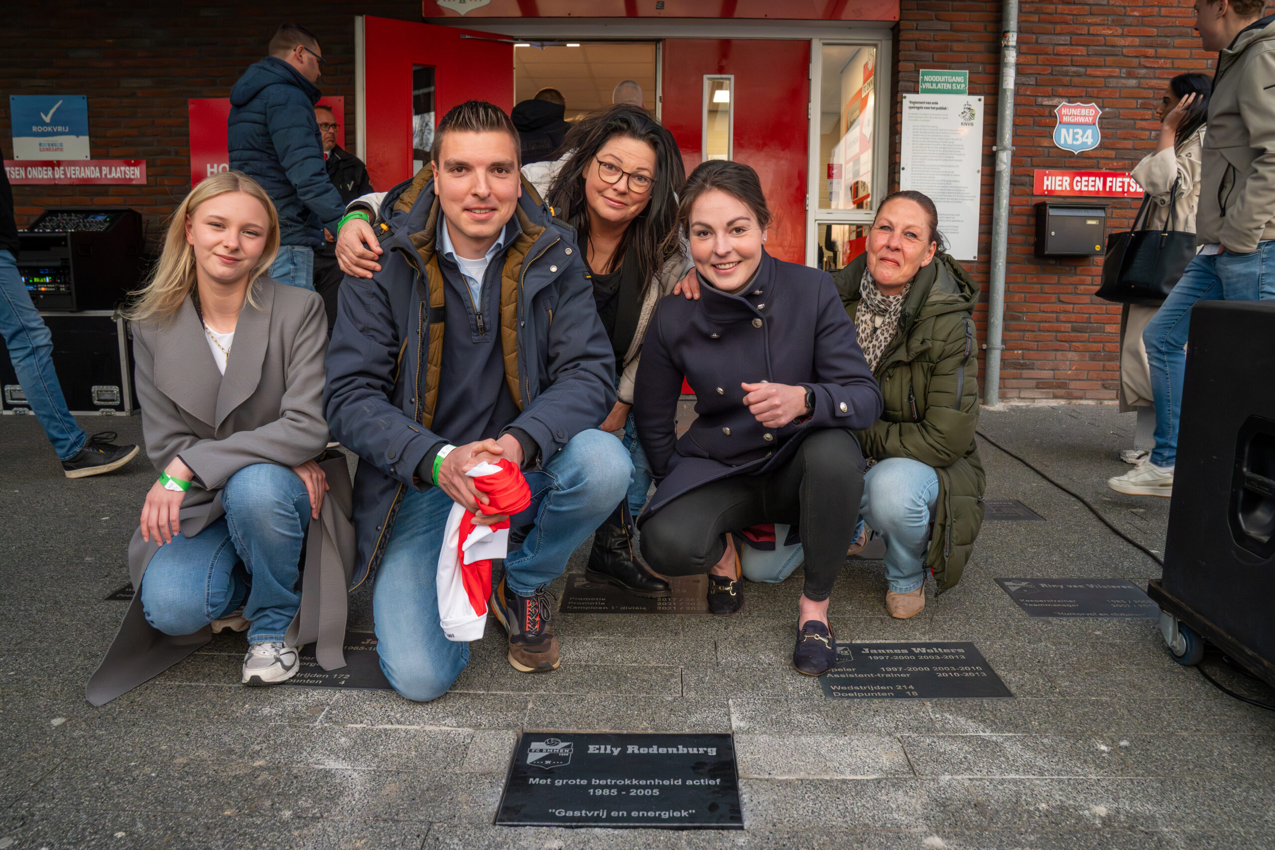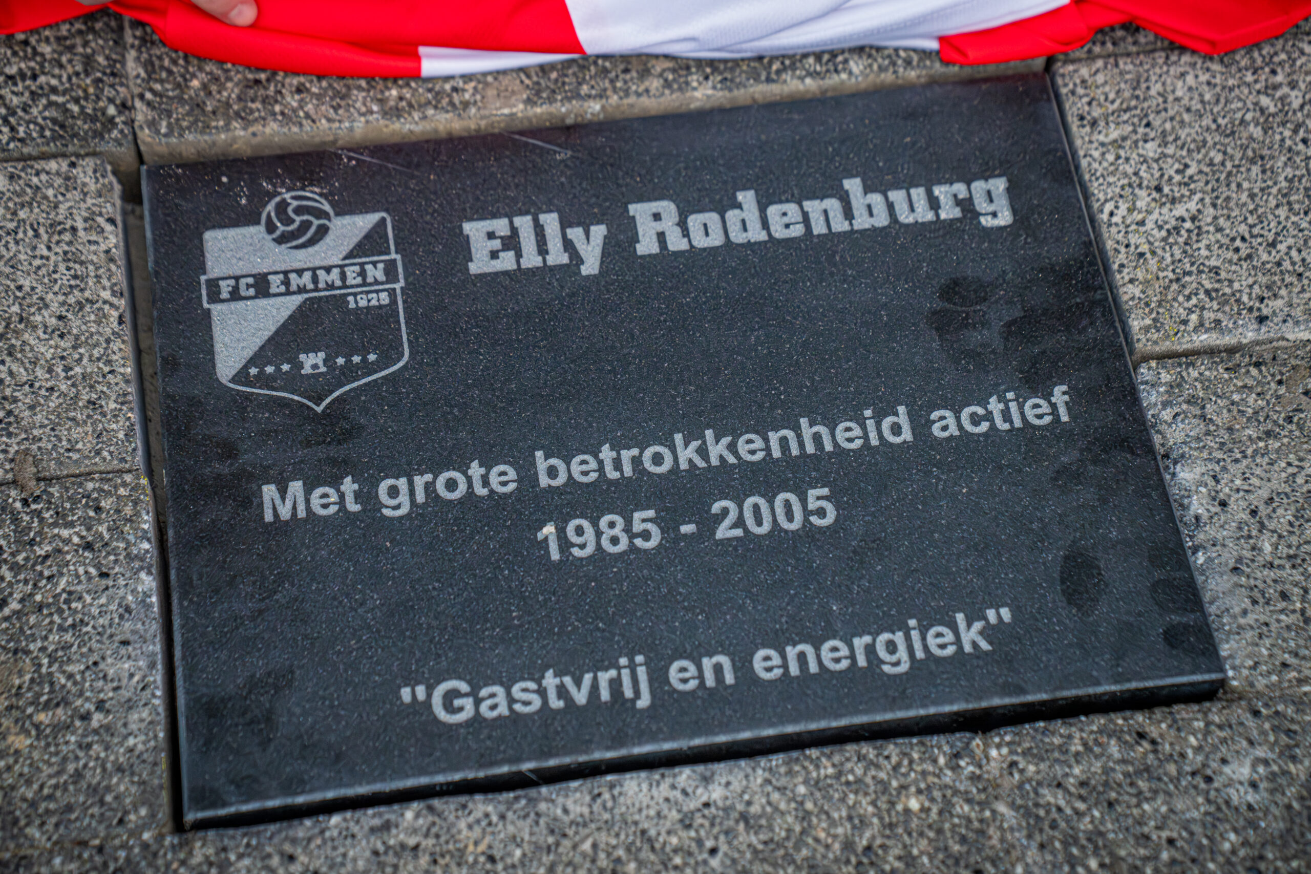 Met de eretegel houdt FC Emmen de herinnering aan Elly Rodenburg levend op een plek die onlosmakelijk met haar verbonden is. Haar naam blijft daarmee voor altijd zichtbaar bij De Oude Meerdijk, de plek waar zij jarenlang van grote waarde was voor onze club.