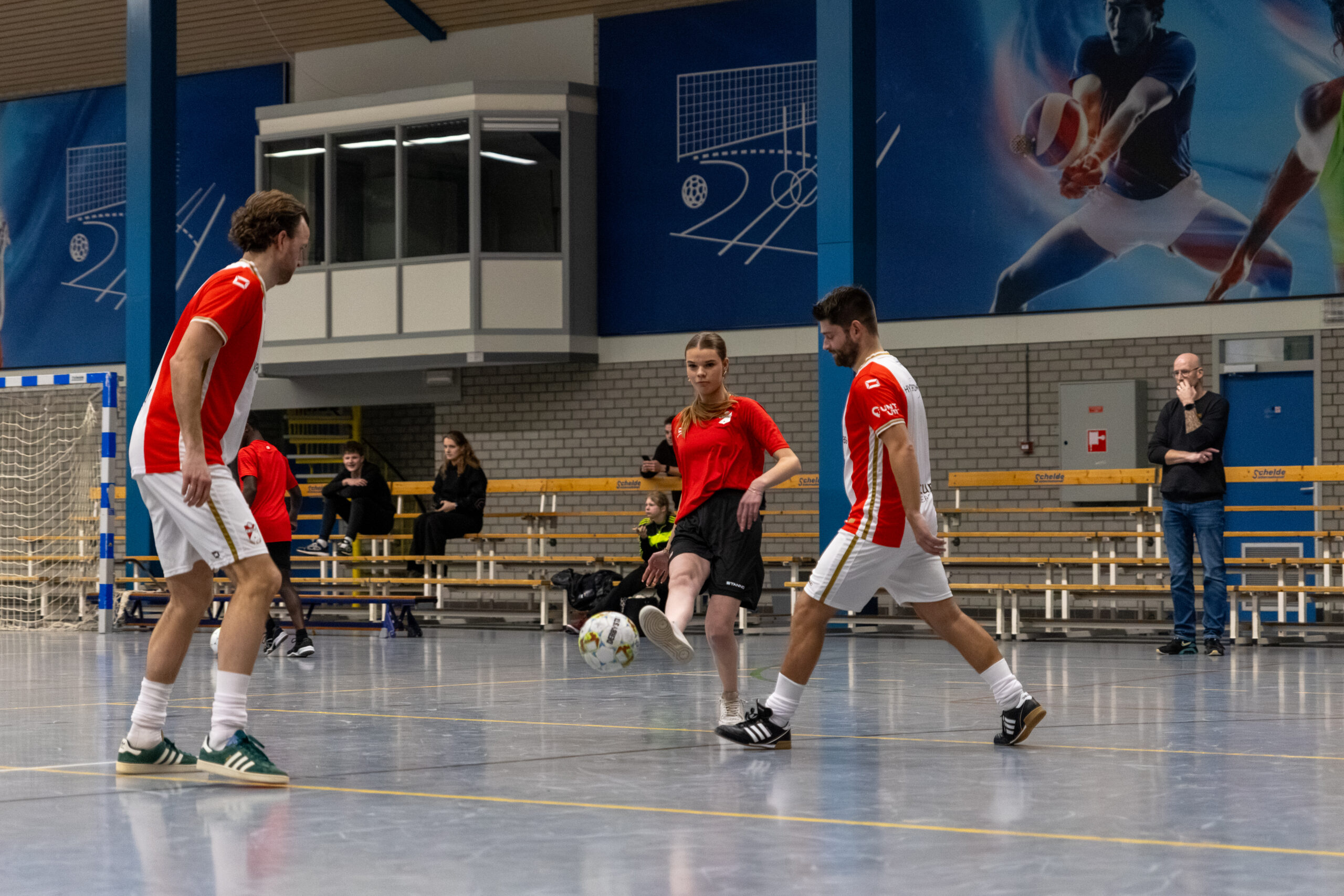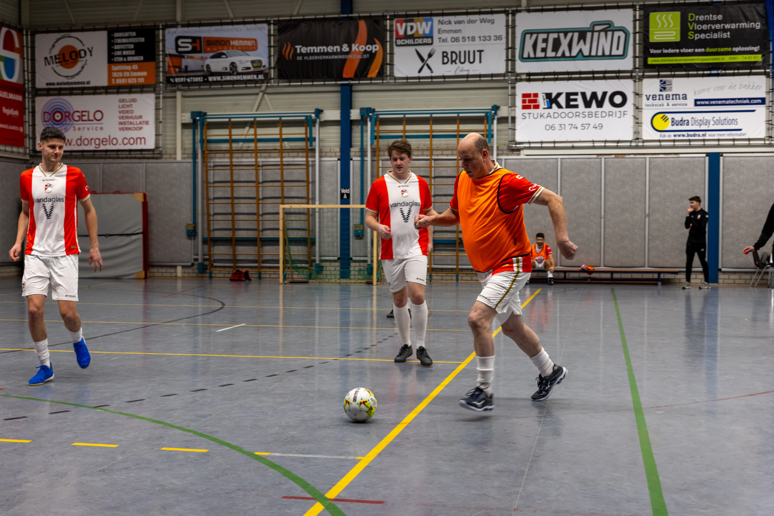 Na de pitches van de deelnemende bedrijven was het tijd om in beweging te komen. Tijdens een sportief voetbaltoernooi speelden de jongeren onderling in teams, aangevuld met twee businessteams waarin vertegenwoordigers van het bedrijfsleven meespeelden. De sporthal was verdeeld in drie velden en het plezier spatte ervan af.