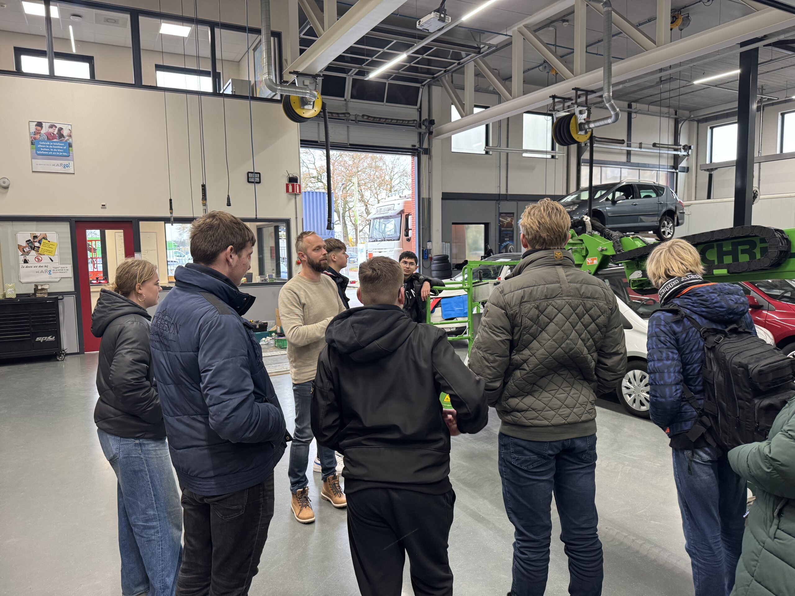 De leerlingen werden welkom geheten door Kasper Heijnen van KARgo!. In een toegankelijke presentatie legde hij uit wat er allemaal komt kijken bij transport en logistiek, welke functies er zijn en welke opleidingen daarbij passen. Daarna volgde een rondleiding door het opleidingscentrum.