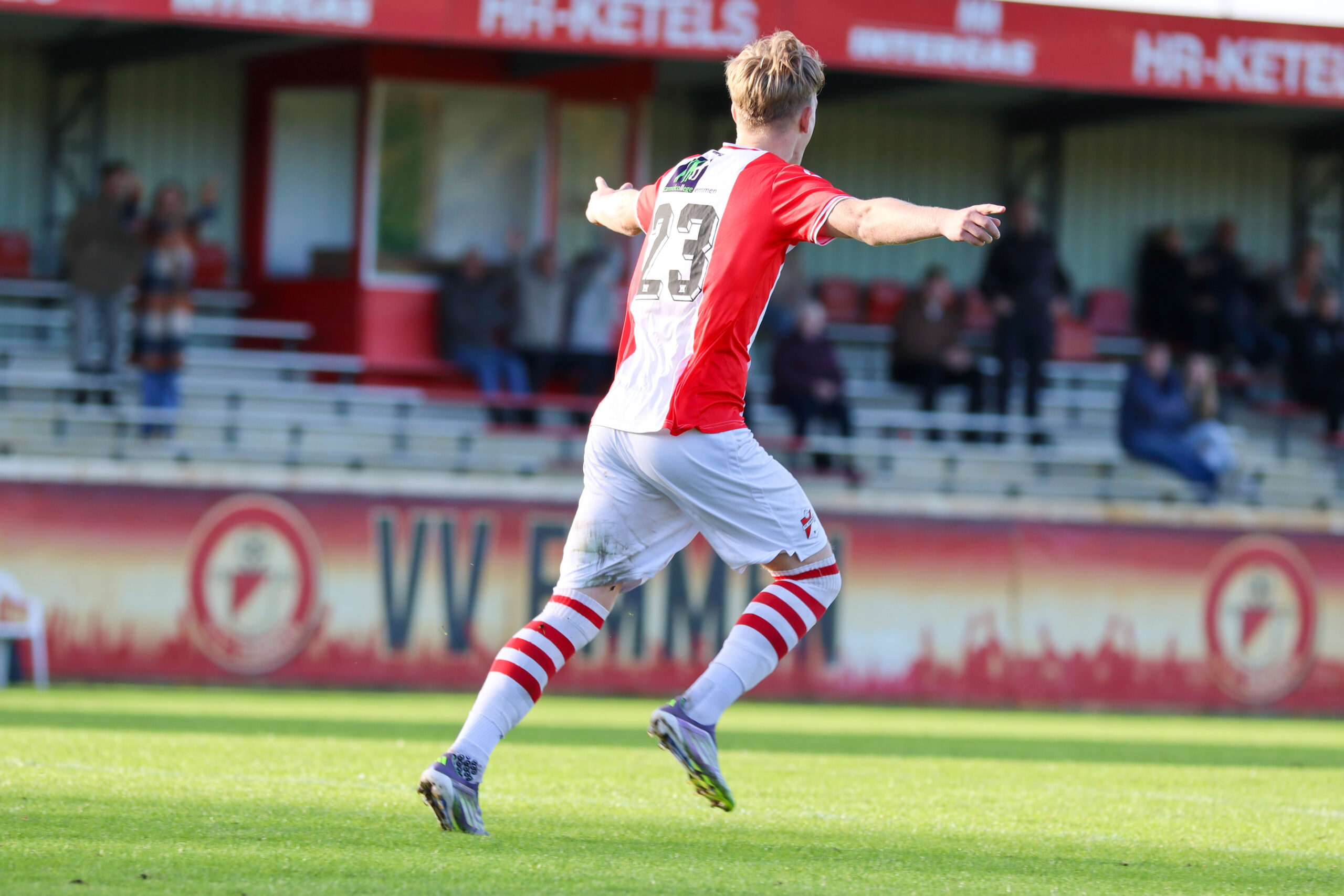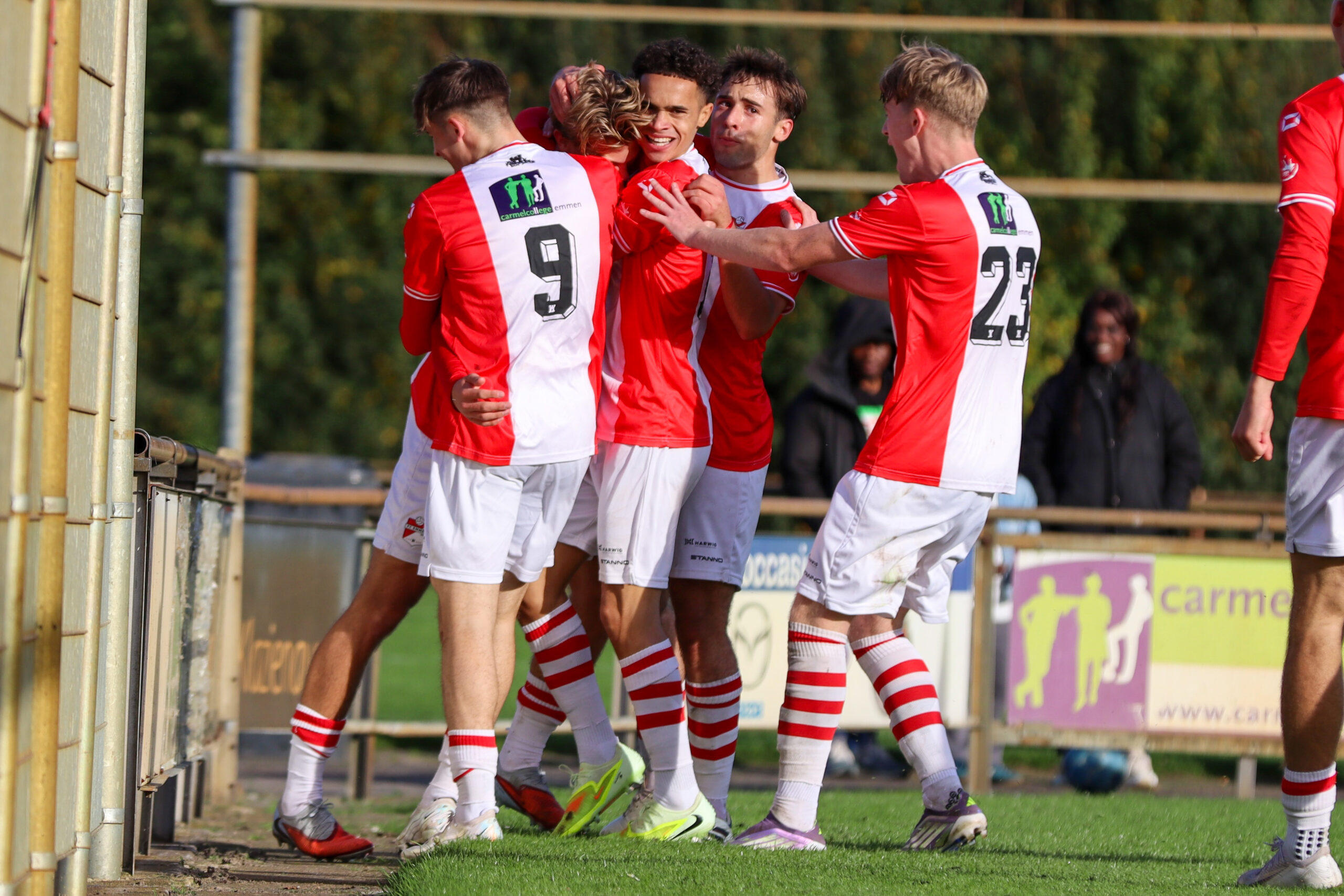 FC Emmen O19 beleefde een mindere middag. De ploeg van trainer Mika Eering ging in het bekertoernooi pijnlijk met 1-7 onderuit tegen VVV-Venlo O19. FC Emmen O19 kwam dankzij een doelpunt van Driven Drenthe nog wel op een 0-1 voorsprong, maar vervolgens ging het helemaal fout. De gasten uit Limburg straften fouten van FC Emmen O19 af en sloegen in de eerste helft maar liefst vier keer toe. Tot overmaat van ramp moest Rinse Sietsma door een tweede gele kaart en dus rood nog voor de rust naar de kant. De wedstrijd was hierdoor na 45 minuten wel gespeeld. In de tweede helft wist VVV-Venlo O19 nog twee keer te scoren, waardoor het uiteindelijk 1-7 werd. FC Emmen O19 eindigde het bekertreffen met negen man na een directe rode kaart voor invaller Lars Miedema.