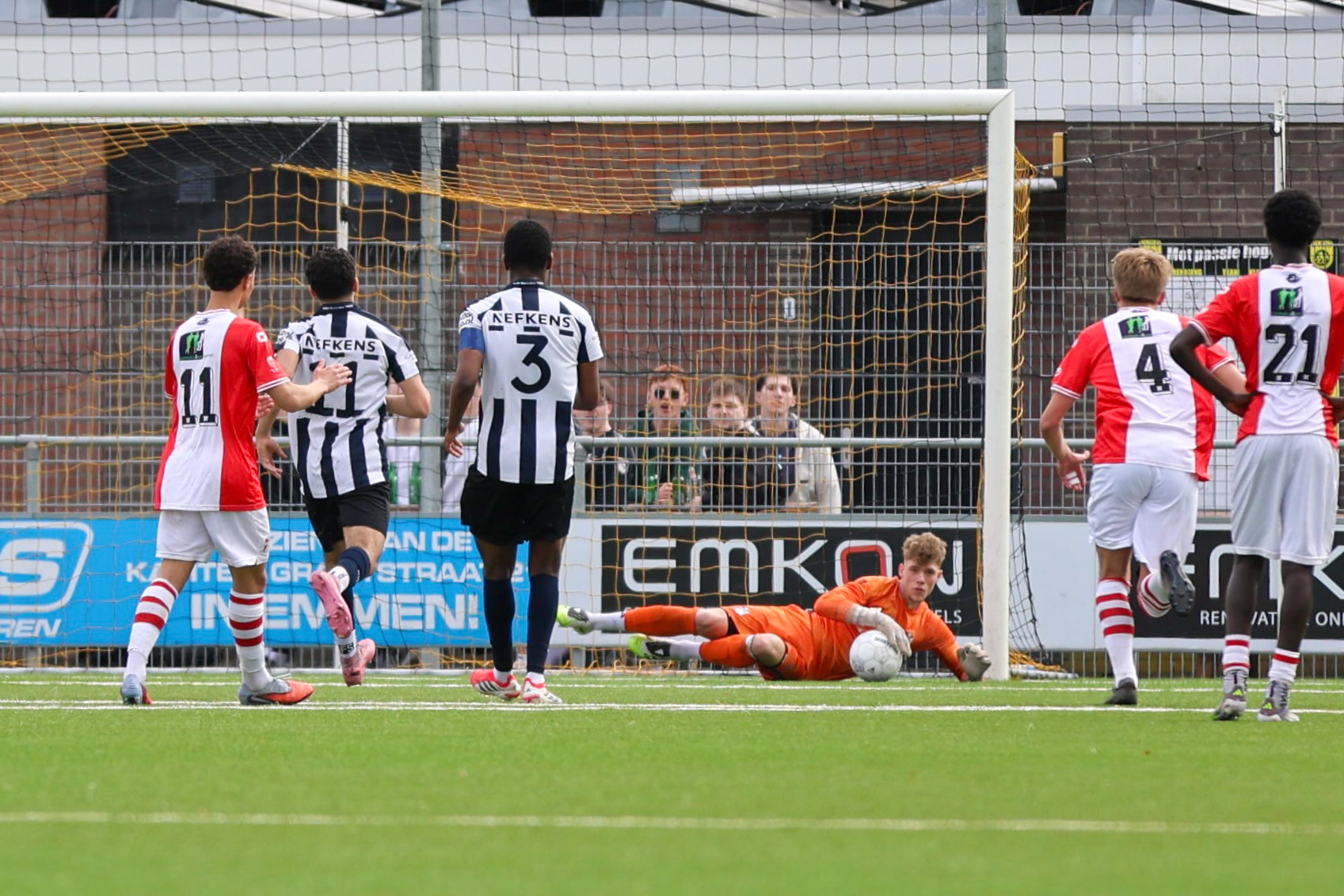 FC Emmen O21 boekte zaterdagmiddag een ruime zege op Hercules O21. De ploeg van trainer Marc Hegeman was op het hoofdveld van SVBO met 6-0 te sterk. Het werd de middag van Daan Lambers. De spits uit de Onder 19 was maar liefst vier keer trefzeker. Al na zeven minuten viel de openingstreffer van Lambers. In de 22e minuut volgde een cruciaal moment in de wedstrijd. Hercules O21 kreeg een strafschop na een overtreding van Yvarion Gorissen, maar doelman Kevin Norder pakte vervolgens de penalty. Vlak voor rust verdubbelde Daan Lambers de voorsprong en maakte hij zijn tweede van de middag. In de tweede helft bleef FC Emmen O21 maar aanvallen en scoorde Daan Lambers snel twee keer achter elkaar. Ook verdediger Steyn de Haan was even later trefzeker. Het slotakkoord was voor invaller Remiyan Muthuccumaru.