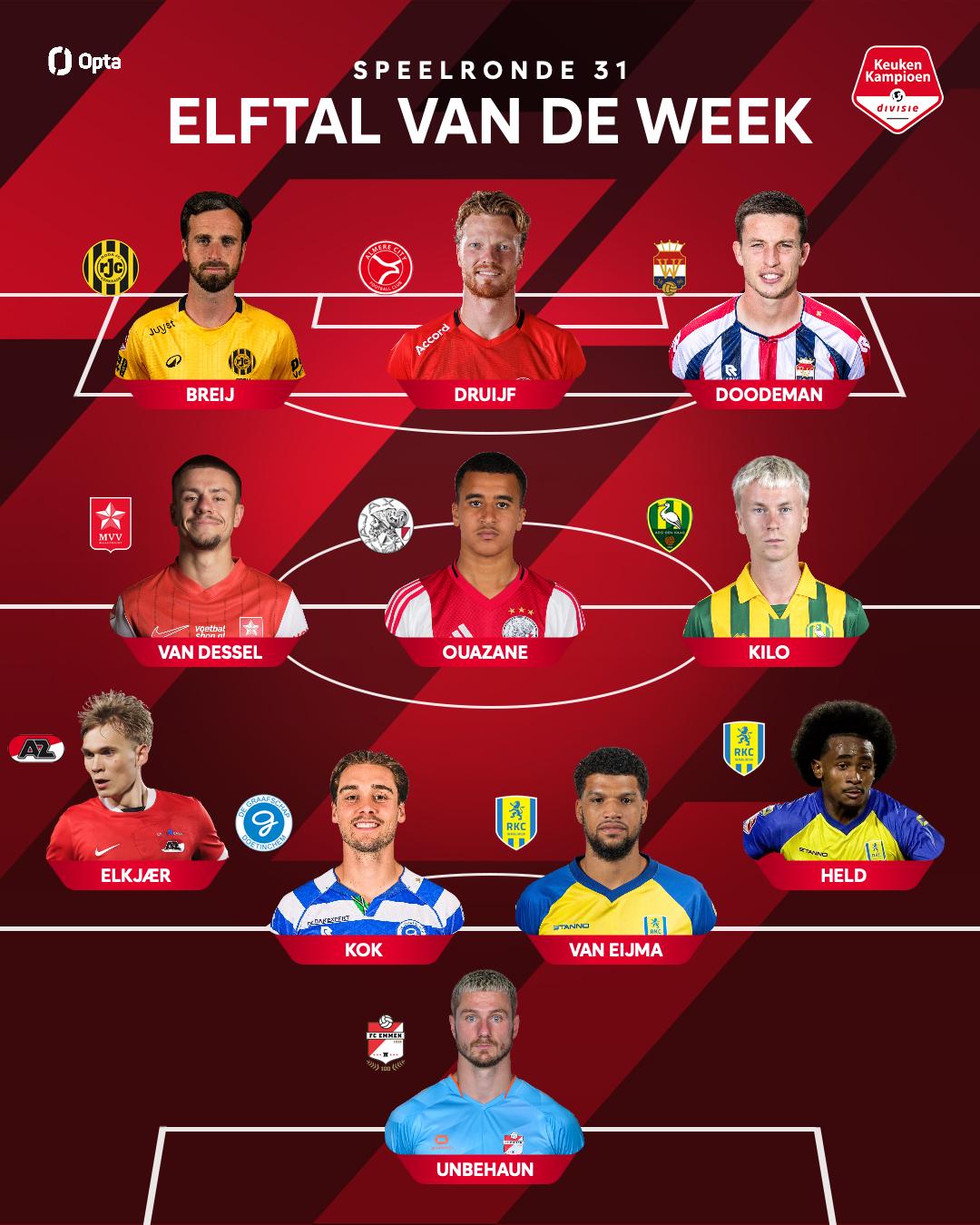Luca Unbehaun is door de Keuken Kampioen Divisie opgenomen in het Elftal van de Week. De doelman verdiende die plek dankzij een sterk optreden in de thuiswedstrijd tegen ADO Den Haag.