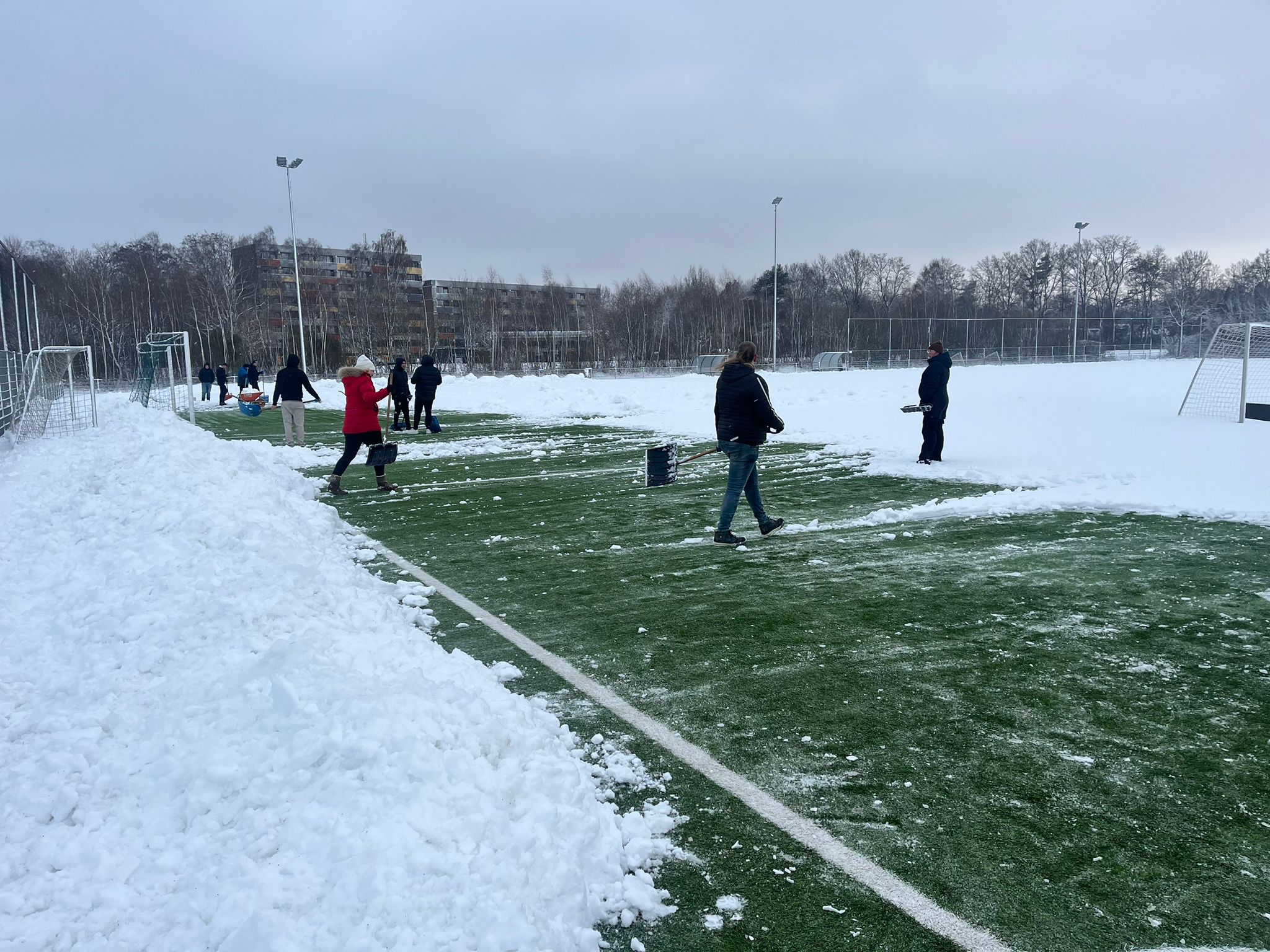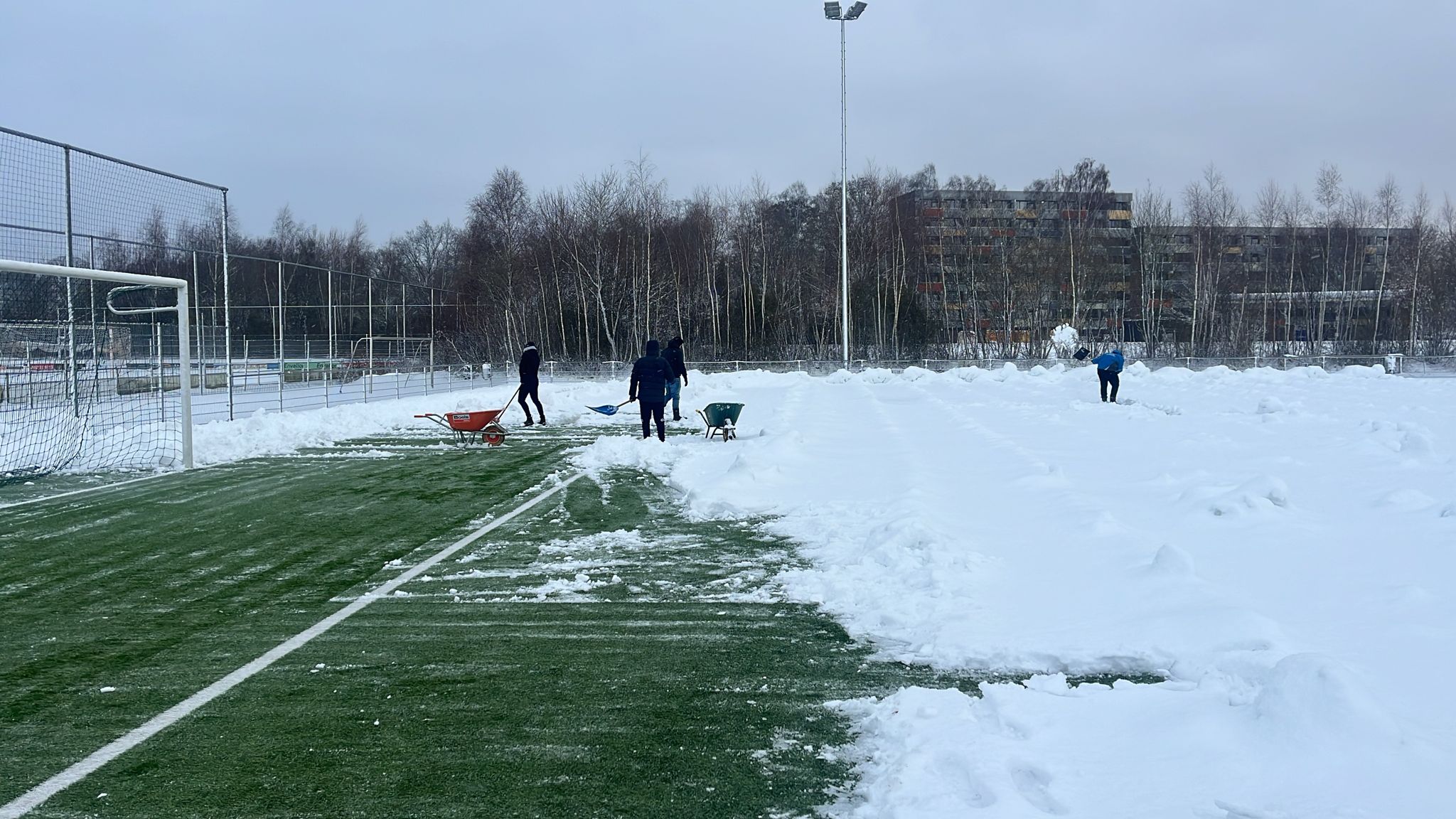 Wij gaan zorgen voor een schoon veld! Vanaf morgenochtend om 08.00 uur starten we dagelijks met het sneeuwvrij maken van het kunstgrasveld bij SC Angelslo, zodat de eerste selectie kan blijven trainen.