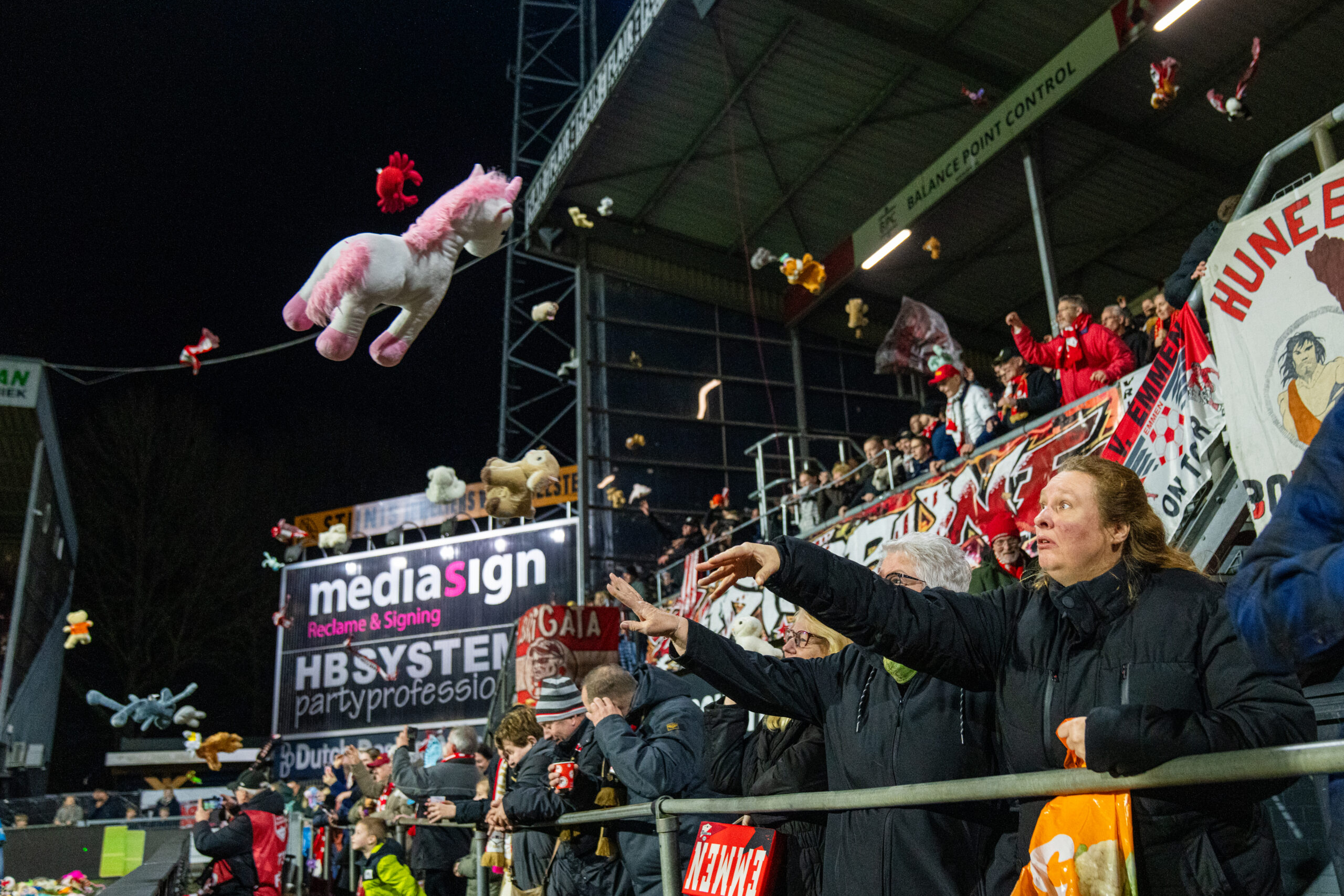 Het meest sprekende moment vond vrijdag plaats op De Oude Meerdijk, voorafgaand aan de wedstrijd tegen VVV-Venlo. Tijdens de opkomst van de spelers stroomde het veld vol met knuffels, sjaals en shirts. Supporters gaven massaal gehoor aan de oproep om iets te betekenen voor een ander.